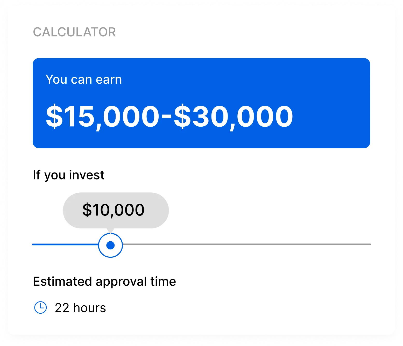Move the slider to match your monthly revenue and get an instant estimate. No credit pull, no commitment, no